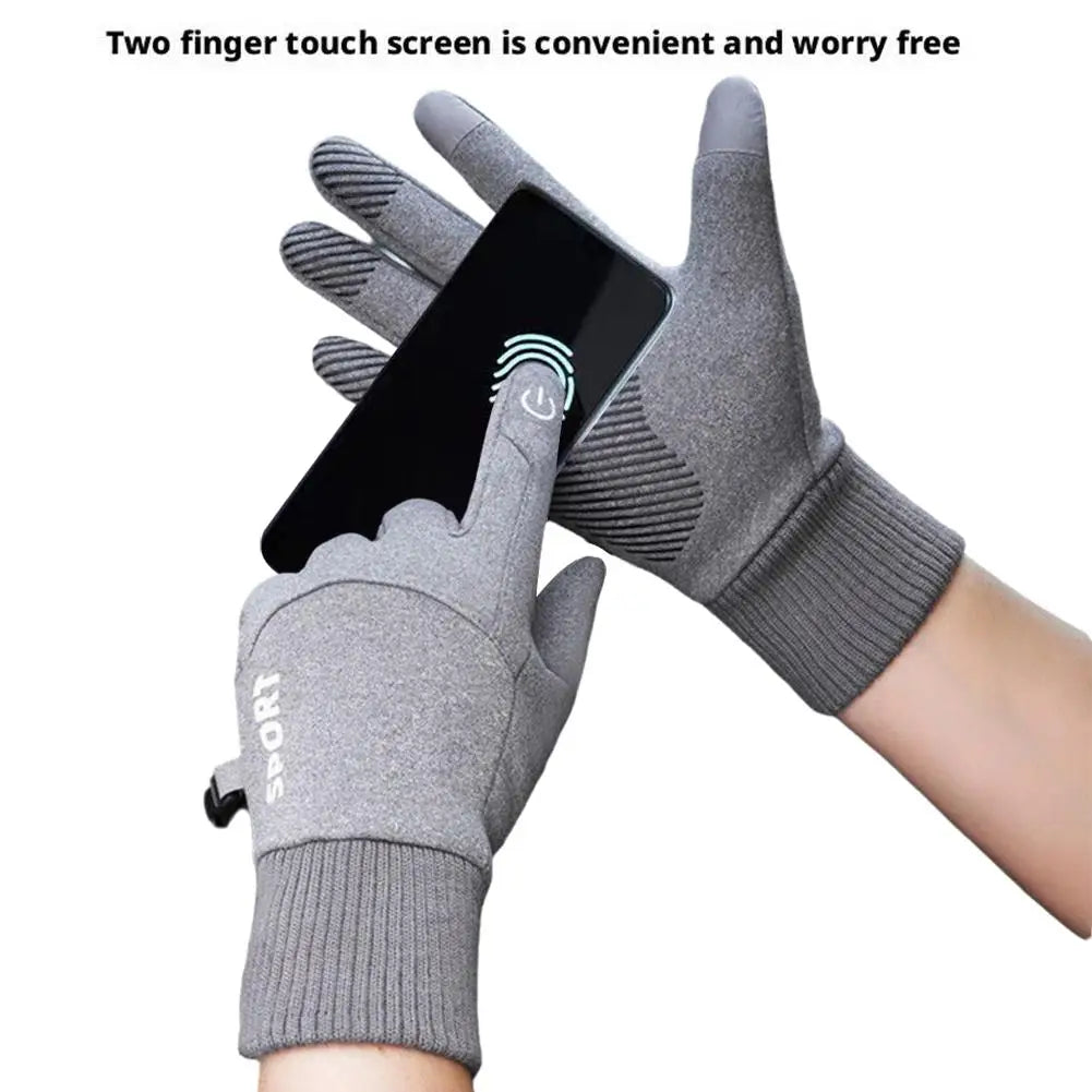 Warm, waterproof gloves with touchscreen-compatible fingertips and a non-slip grip. Designed to keep your hands dry, cozy, and secure during cold outdoor activities.